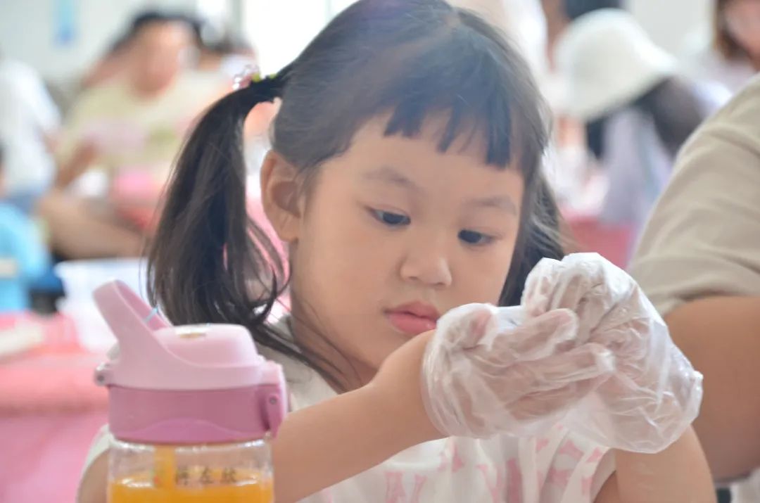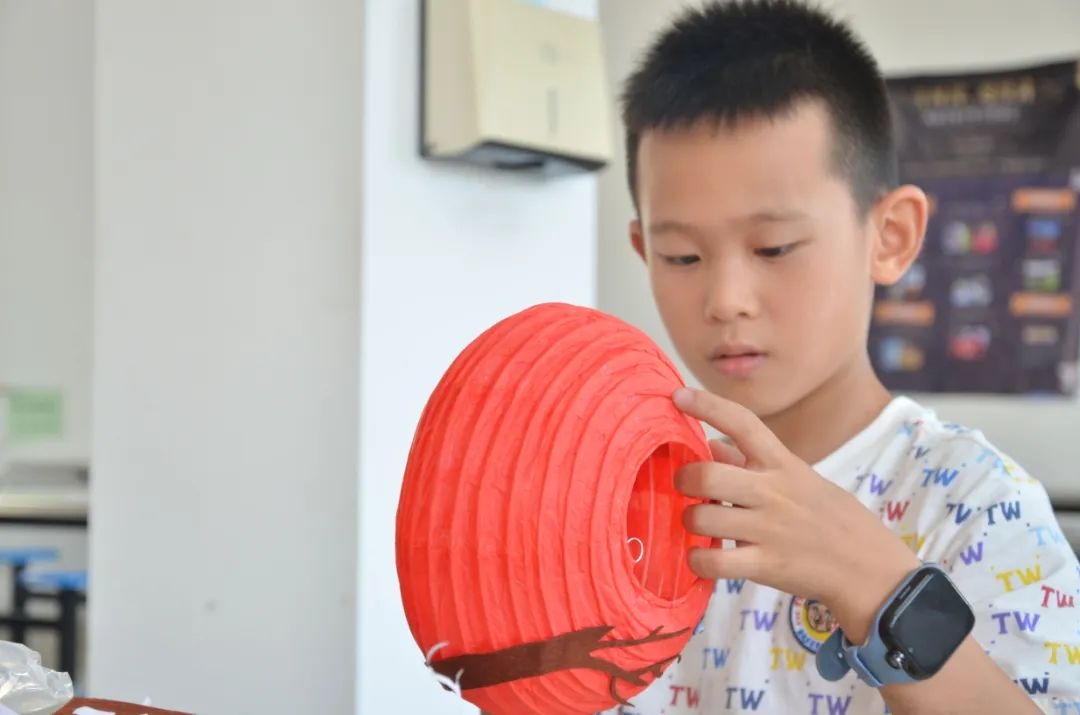 详细了解制作过程后,大小朋友纷纷化身面点师,迫不及待地动起手来。擀饼皮、包馅料、压模……大家围坐一起,相互交流、分工合作,不一会儿,一个个大小匀称、图案精美的冰皮月饼伴着孩子们的欢声笑语美味出炉啦。花灯小组的成员们每一个步骤都耐心细致,力争做到更好,看他们的花灯多漂亮!